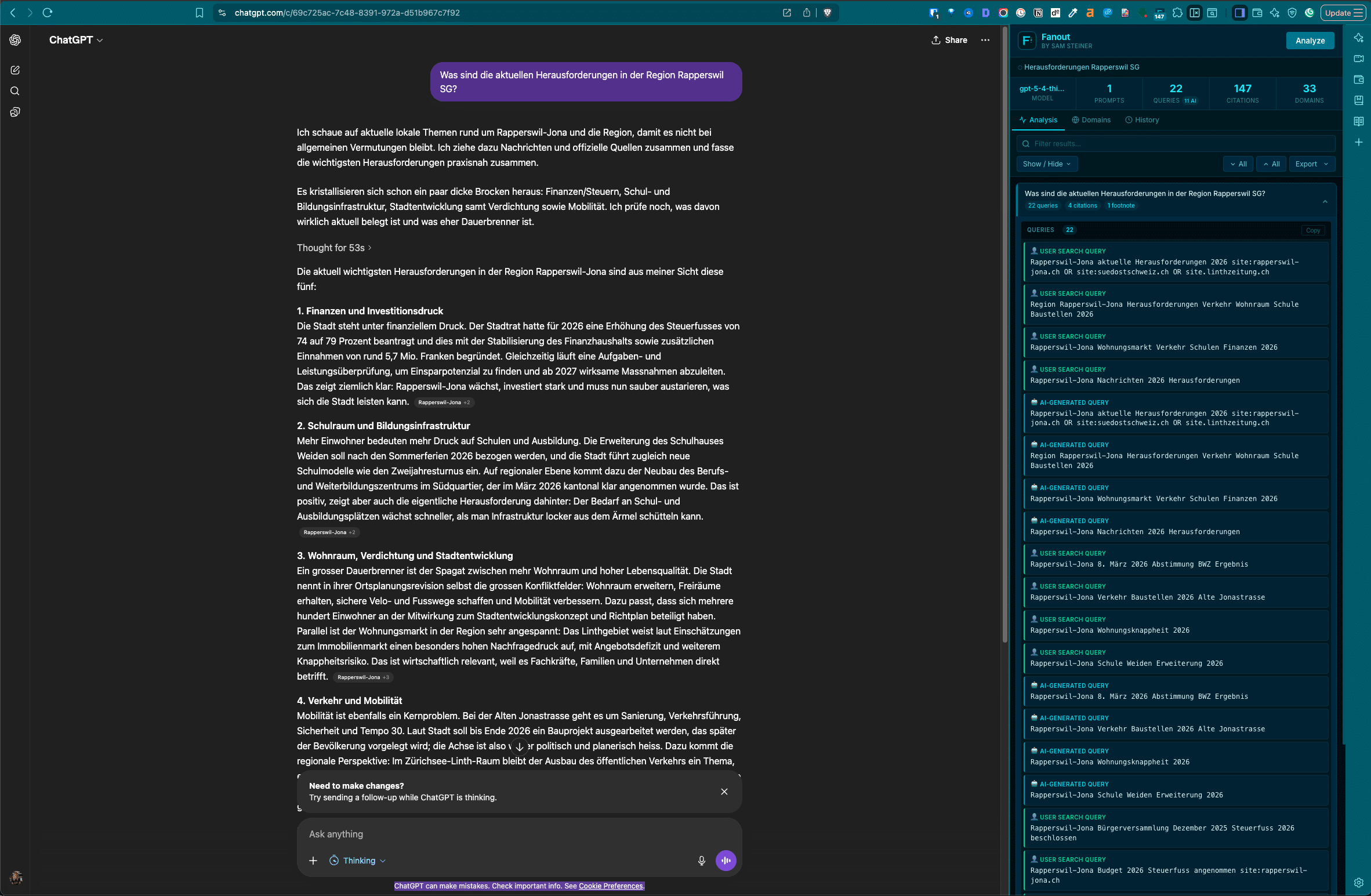 • welche Suchabfragen ChatGPT im Hintergrund erzeugt hat